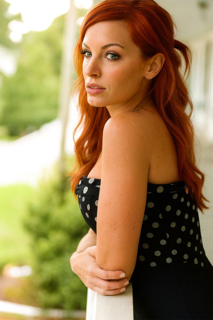 | Physical Description | If only on word could be used to describe Maddy, it would be difficult to come up with as many would be fitting. She is a tall, fiery redhead whose locks comes down to the center of her back in a cascade like a rolling river of fire. In startling contrast to the red mane of hair is her blue eyes that can hold a humorous glint or a coldness that could freeze blood. Her lips hold the promise of a kind word or a ruthless reprimand, twisting sensually with her German accent. Her form is both curvaceous and in shape, which she keeps in fighting form every day in every way. |